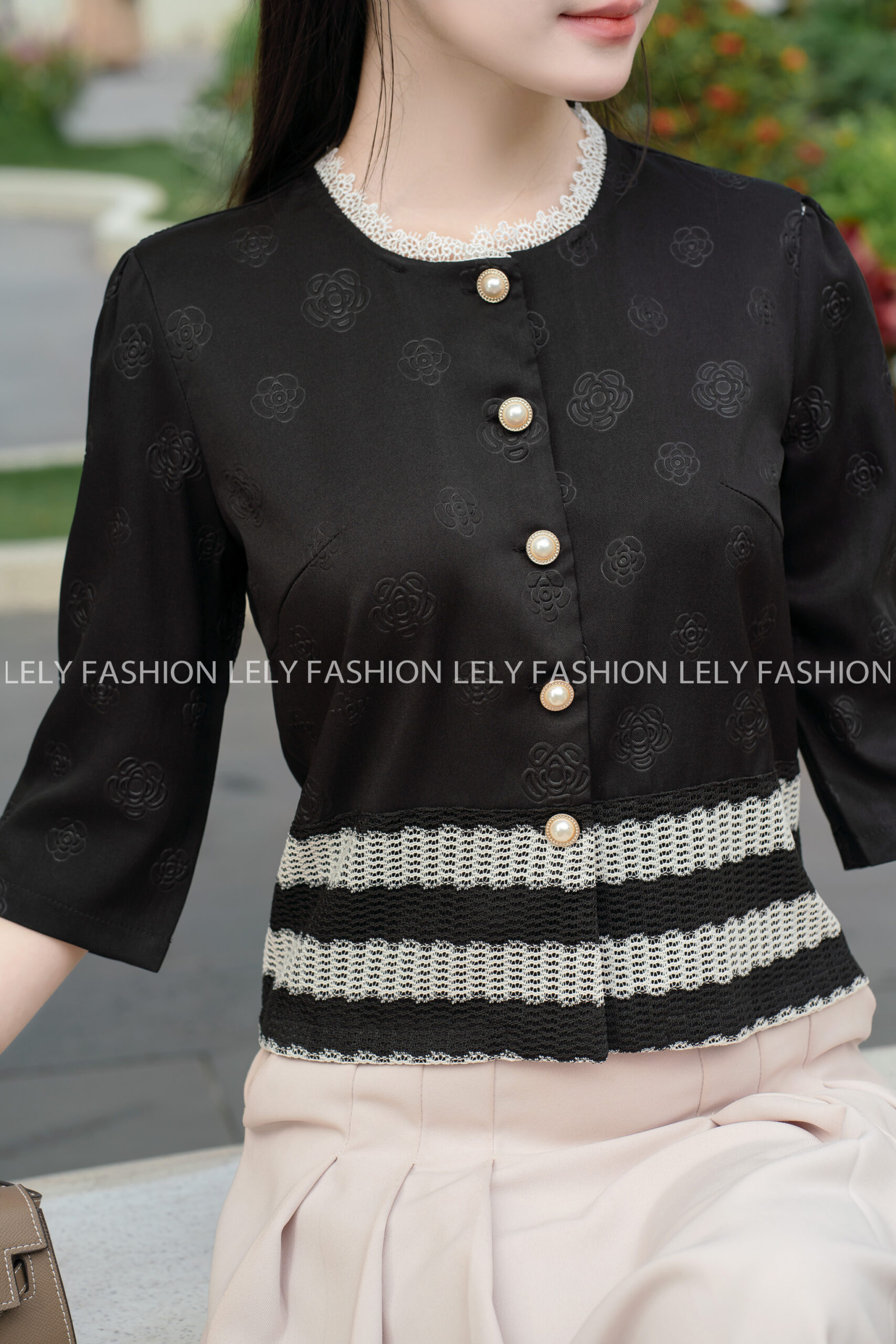 Áo Công Sở Cổ Tròn Phối Viền Ren – A71