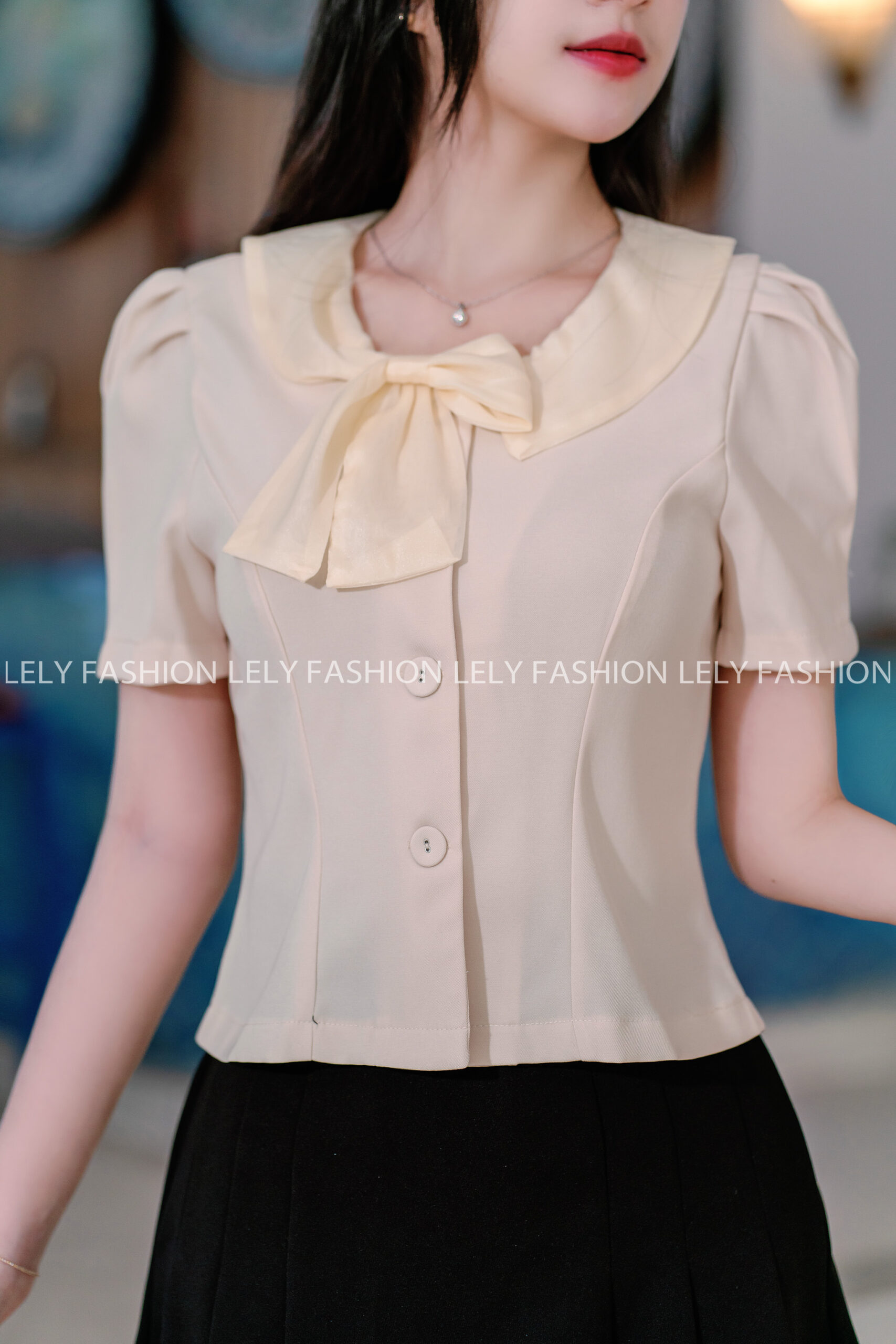Thiết kế cổ tròn phối nơ nữ tính, tôn lên vẻ thanh lịch và dịu dàng