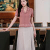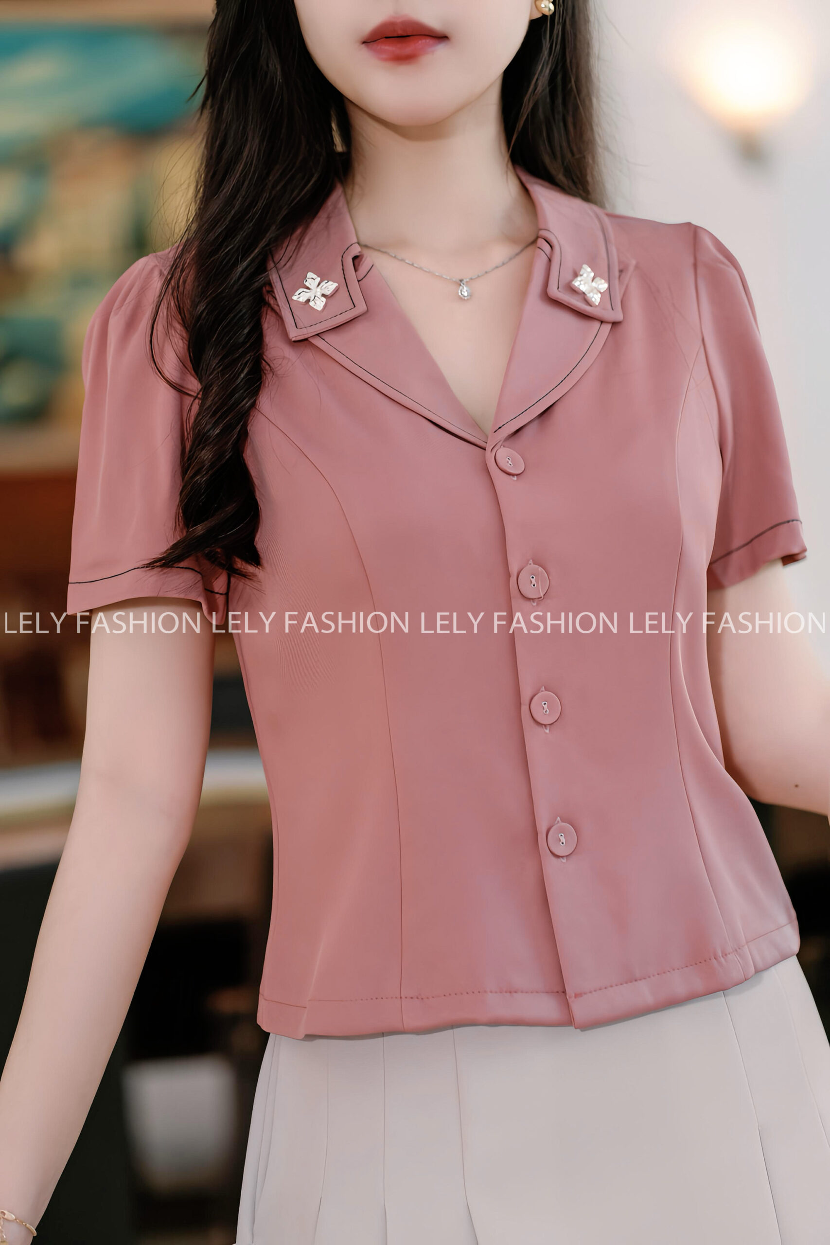 Cổ vest cách điệu phối chi tiết đính đá tinh xảo